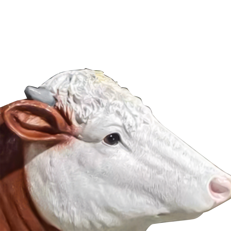 Ein hohes Maß an Simulation: Die Skulptur ist fein geschnitzt und poliert, und ihr Aussehen ist dem einer echten Kuh sehr ähnlich, mit Details wie Haaren und Textur deutlich sichtbar.